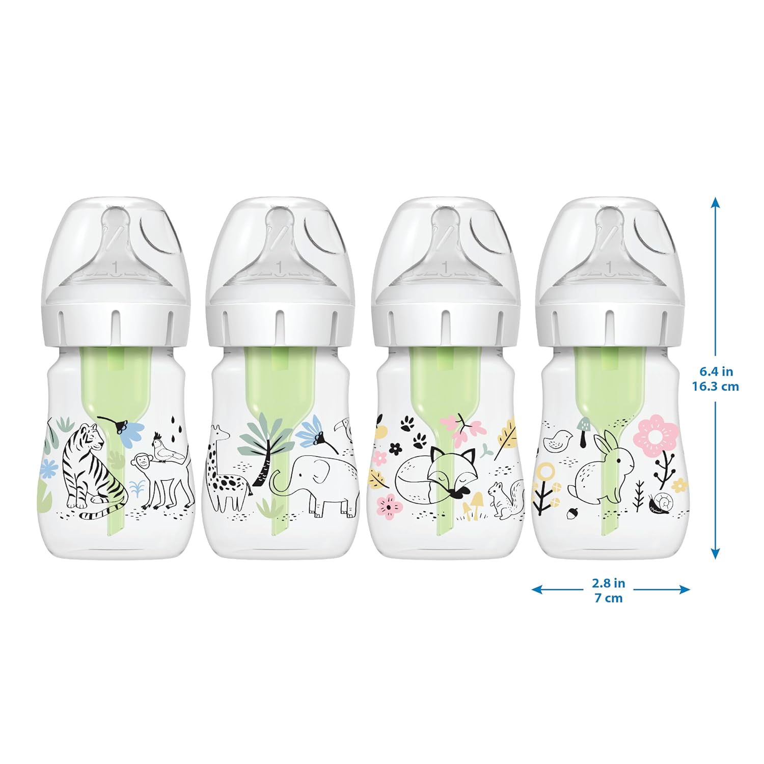 Dr. Brown's Anti-Colic Options+ Wide-Neck Baby Bottle Designer Edition Bottles, Woodland Decos, 5 oz/150 mL, Level 1 Nipple, 0m+, 2-Pack