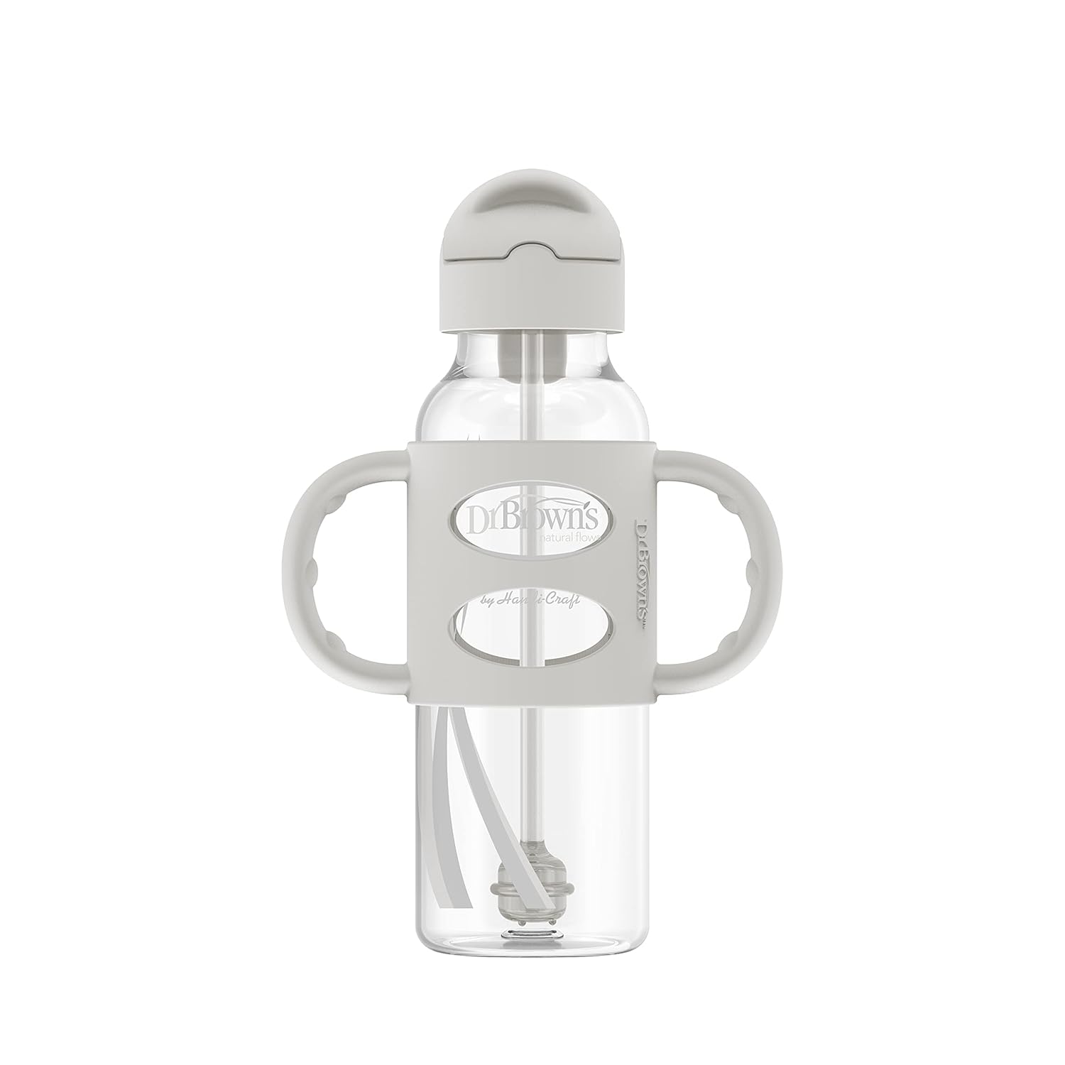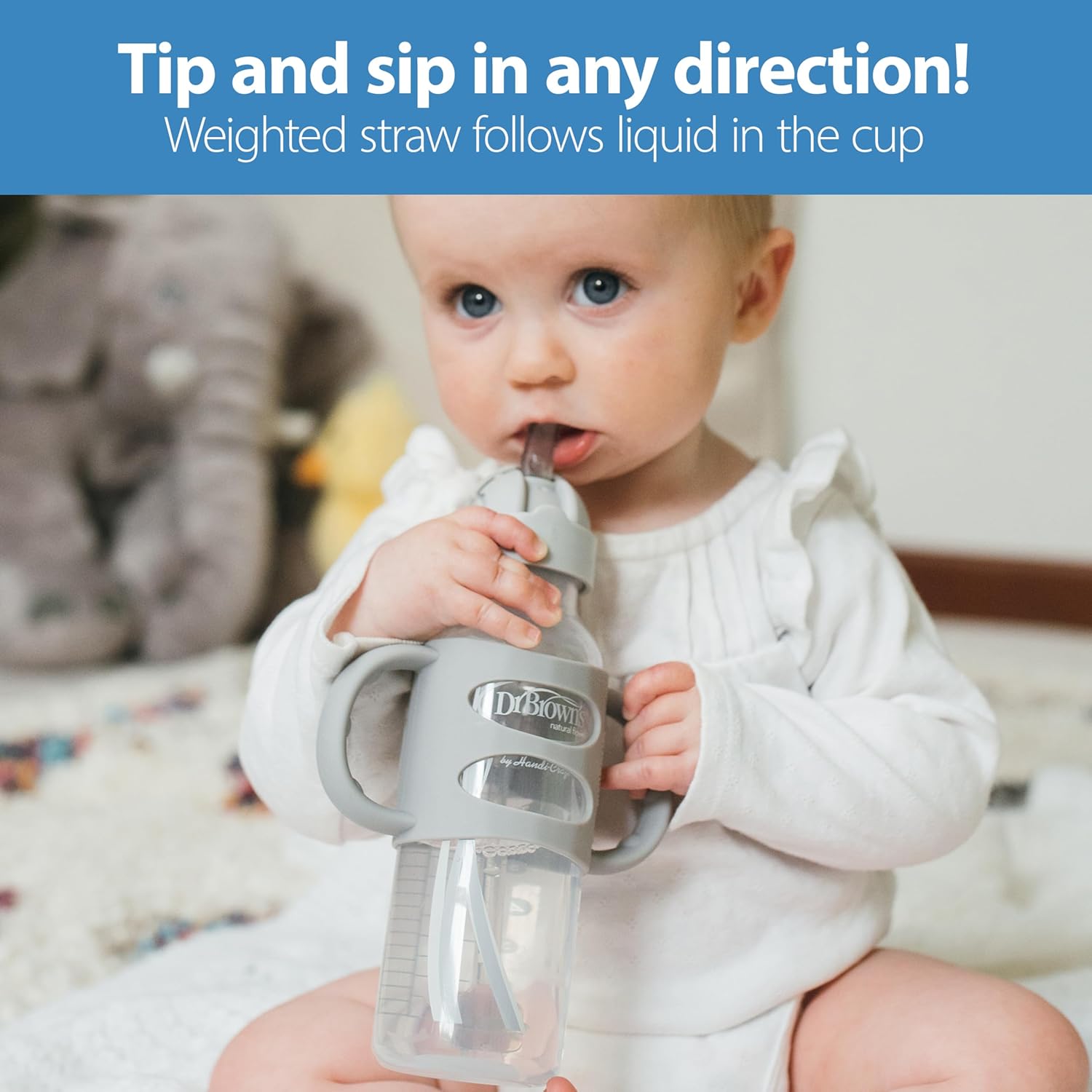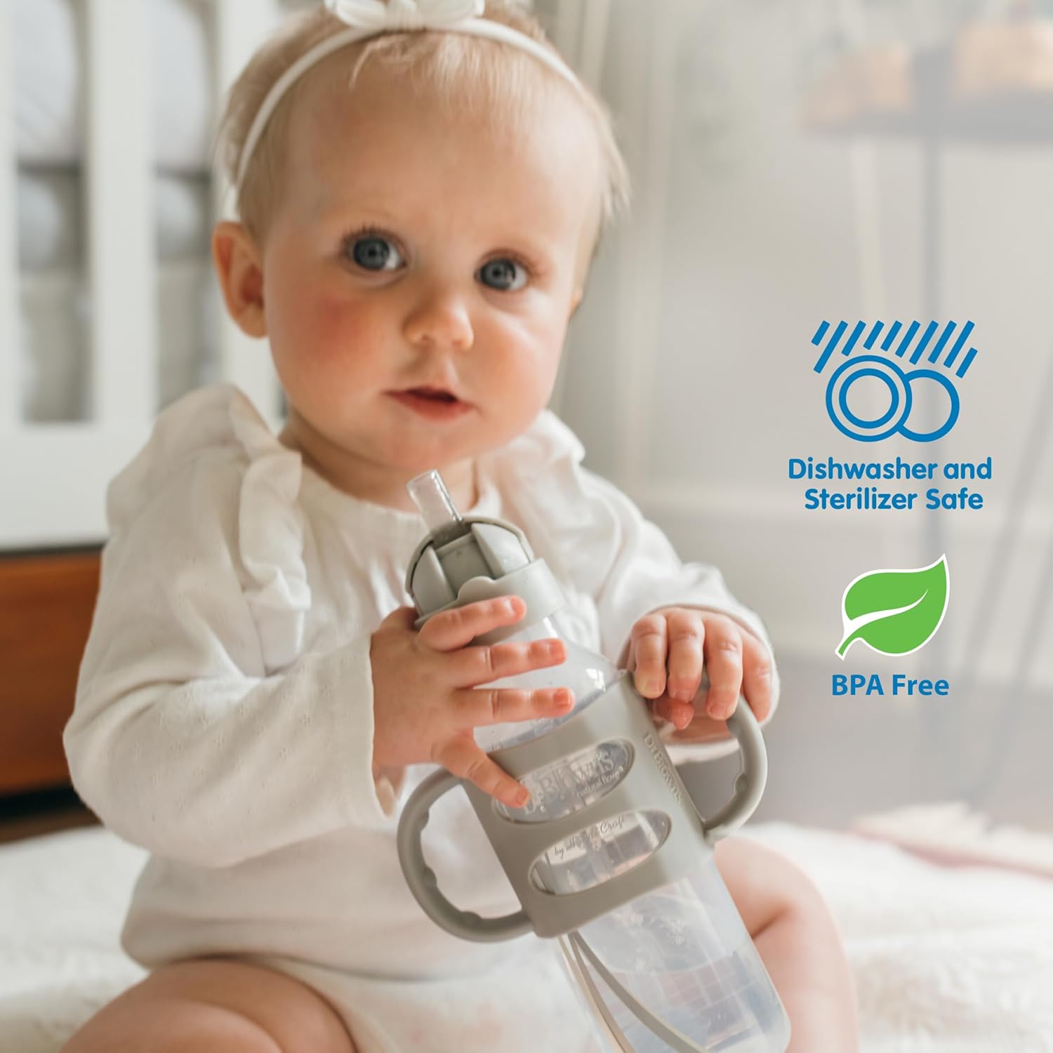 Dr. Brown's Milestones Narrow Sippy Straw Bottle, Spill-Proof with 100% Silicone Handles and Weighted Straw, 8 oz/250 mL, Blue/Gray, 6m+