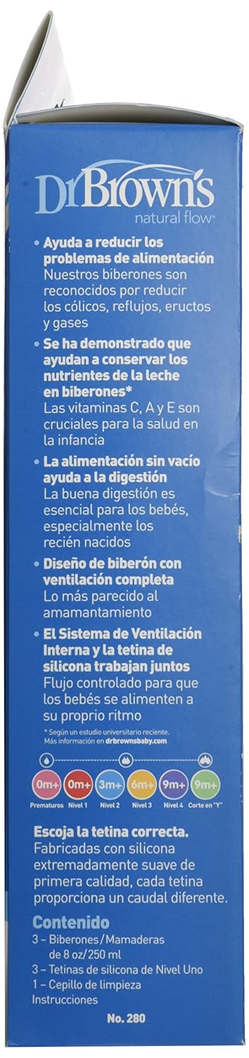 Dr. Brown's Natural Flow Anti-Colic Options+ Wide-Neck Baby Bottles 9 oz/270 mL, with Level 1 Slow Flow Nipple, 4 Count, 0m+