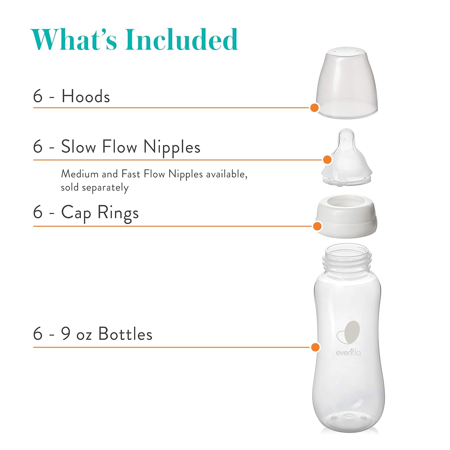Evenflo Feeding Premium Proflo Venting Balance Plus Wide Neck Baby, Newborn and Infant Bottles - Helps Reduce Colic - 9 Ounce (Pack of 6)