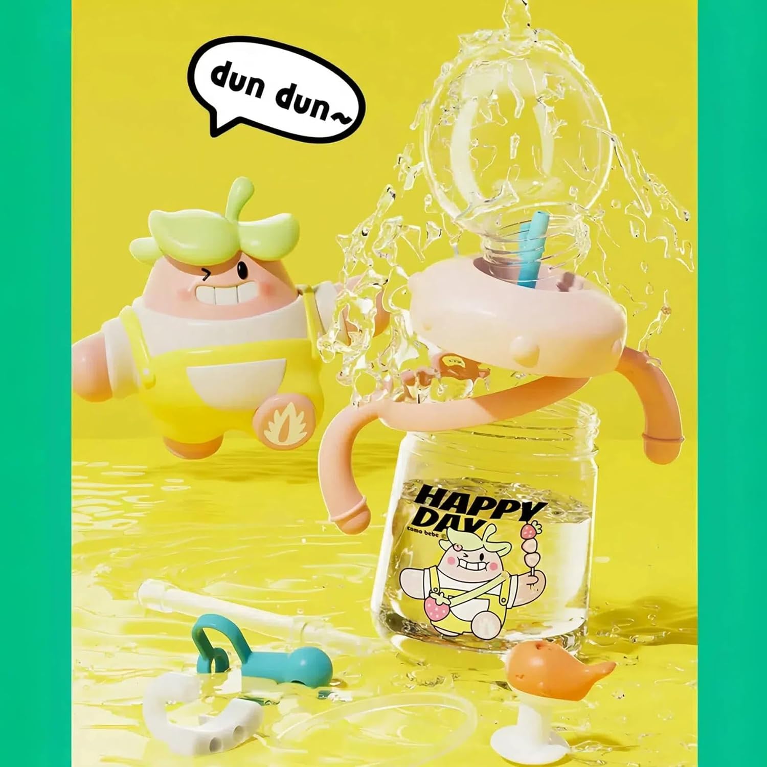 FRAGRANTGARDEN Drinking Cup With Whale Squirt, Weighted Sippy Cups With Adjustable Straps, 300ml Whale Water Cups With Silicone Soft Tip, Portable Leak Proof Straw Sippy Cup For Kids (A-Green)