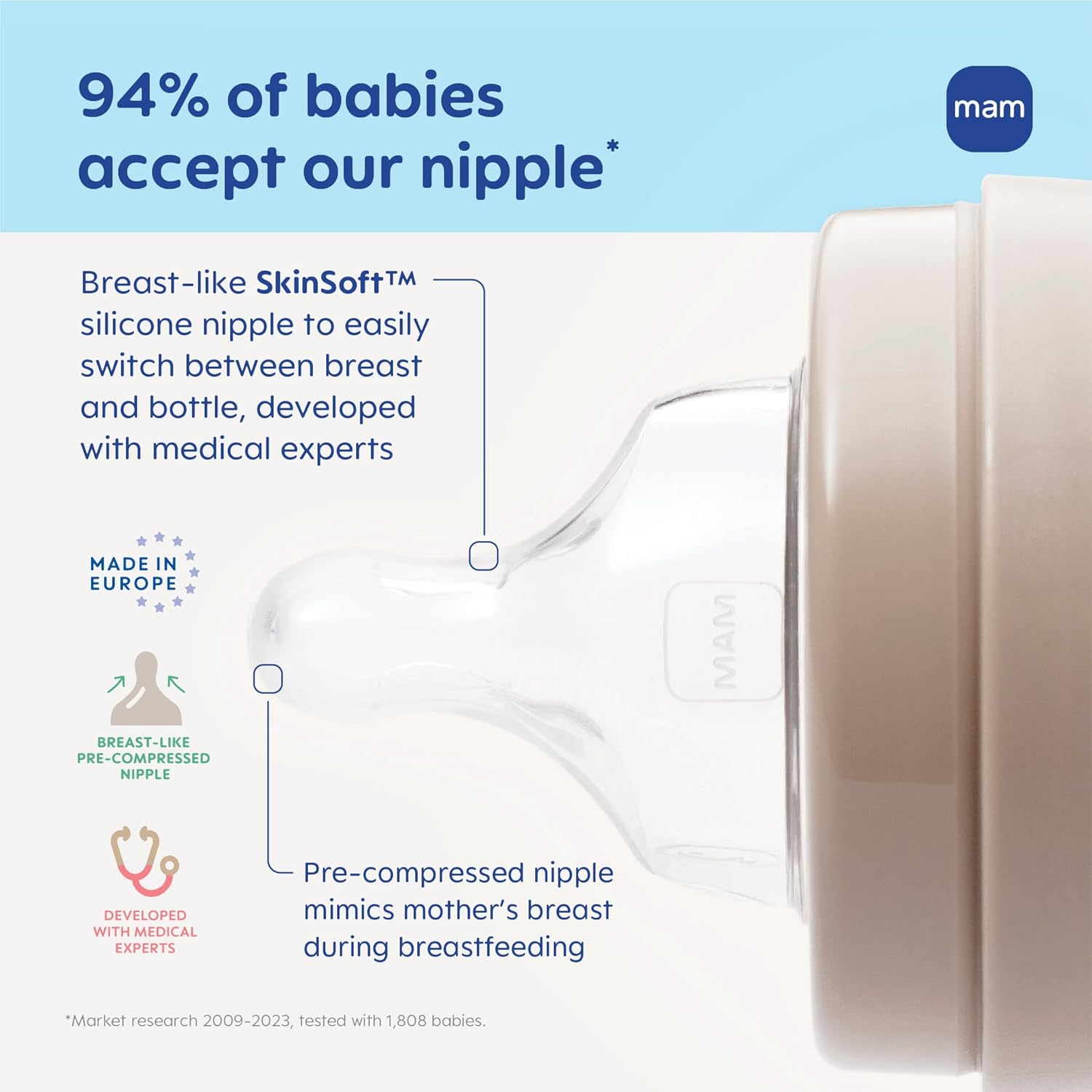 MAM 6oz Premium Glass Wide Neck Baby Bottle with Slow Flow Breastfeeding-Like Silicone Nipple, Easy to Clean,BPA Free, 0+ Months, Easy Switch Between Breast and Bottle, Made in Europe, 3 Pack Girl