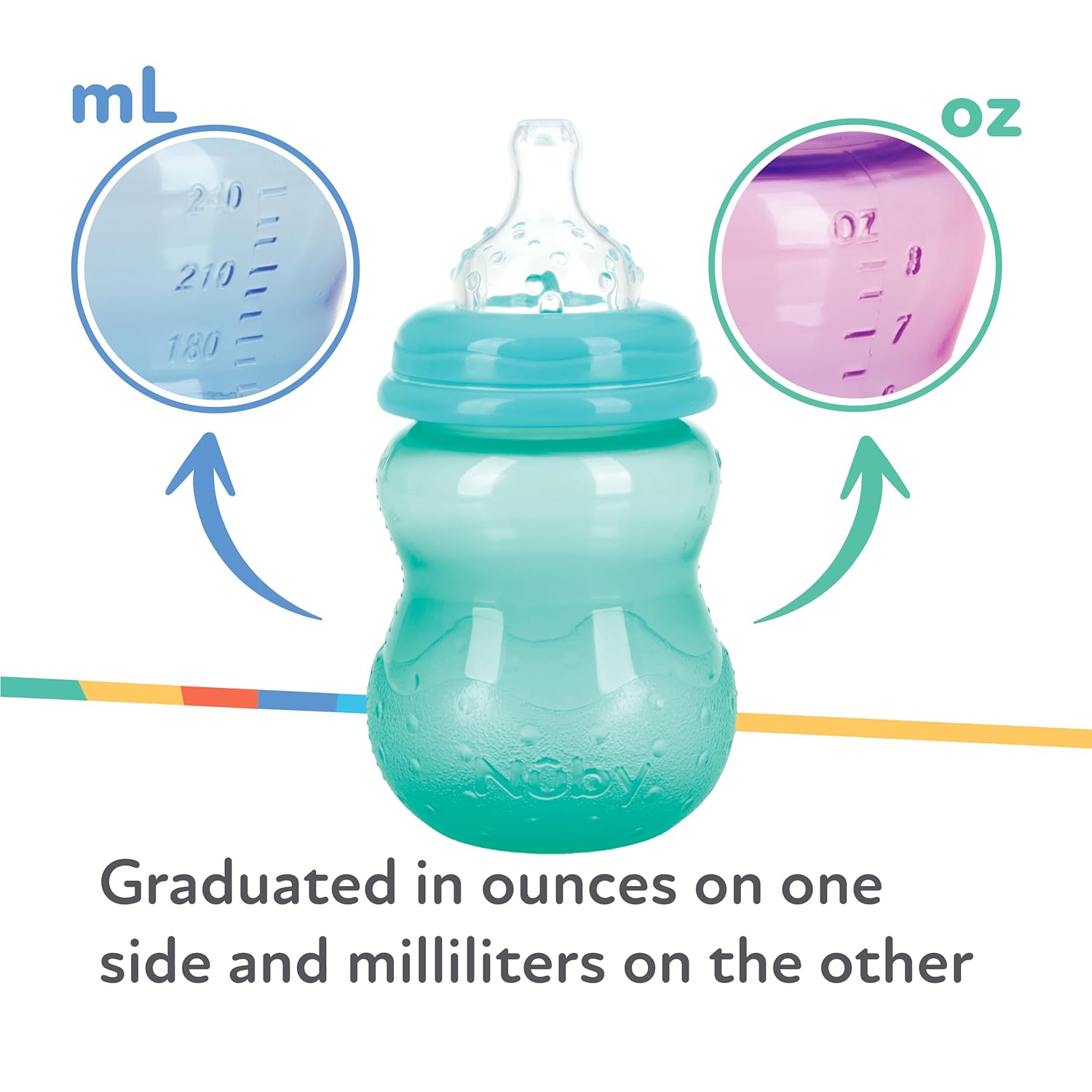 Nuby Wide Neck Non-Drip Bottle - Baby Bottles with Anti-Colic Vari-Flo Valve - (3-Pack) 8 Oz - 0+ Months - Aqua, Pink, Purple