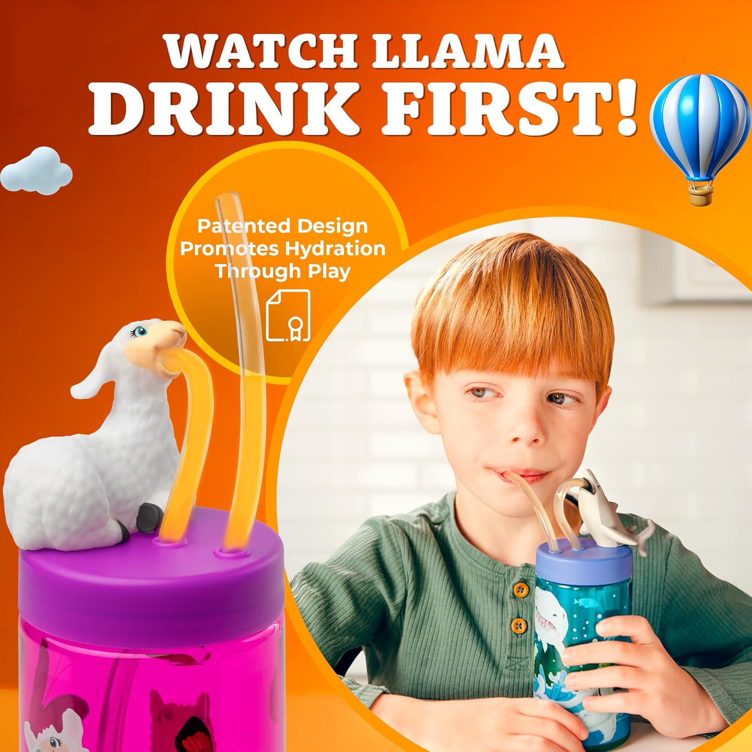 SIP WITH ME Kids Water Bottle, Toddler Cups, Tumbler with Lid and Straw, Travel Sippy Cup for Water or Milk, Kids Cups with Lids for Toddlers 3 and Up, BPA Free Plastic, 12 oz (Trend Zoo Llama)
