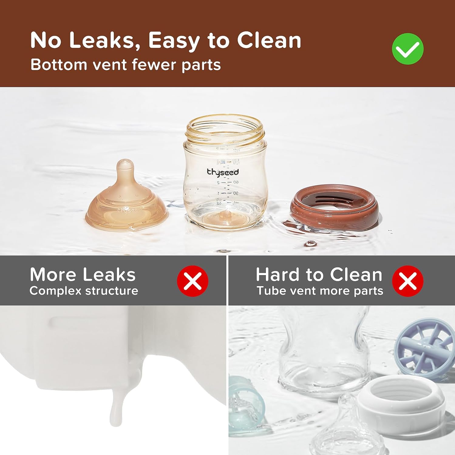 Thyseed Glass Natural Anti-Colic Baby Bottles | Newborn Breast Like Nursing Bottle for Breastfed Babies with Nipple(0-1 Months),5oz,1pack