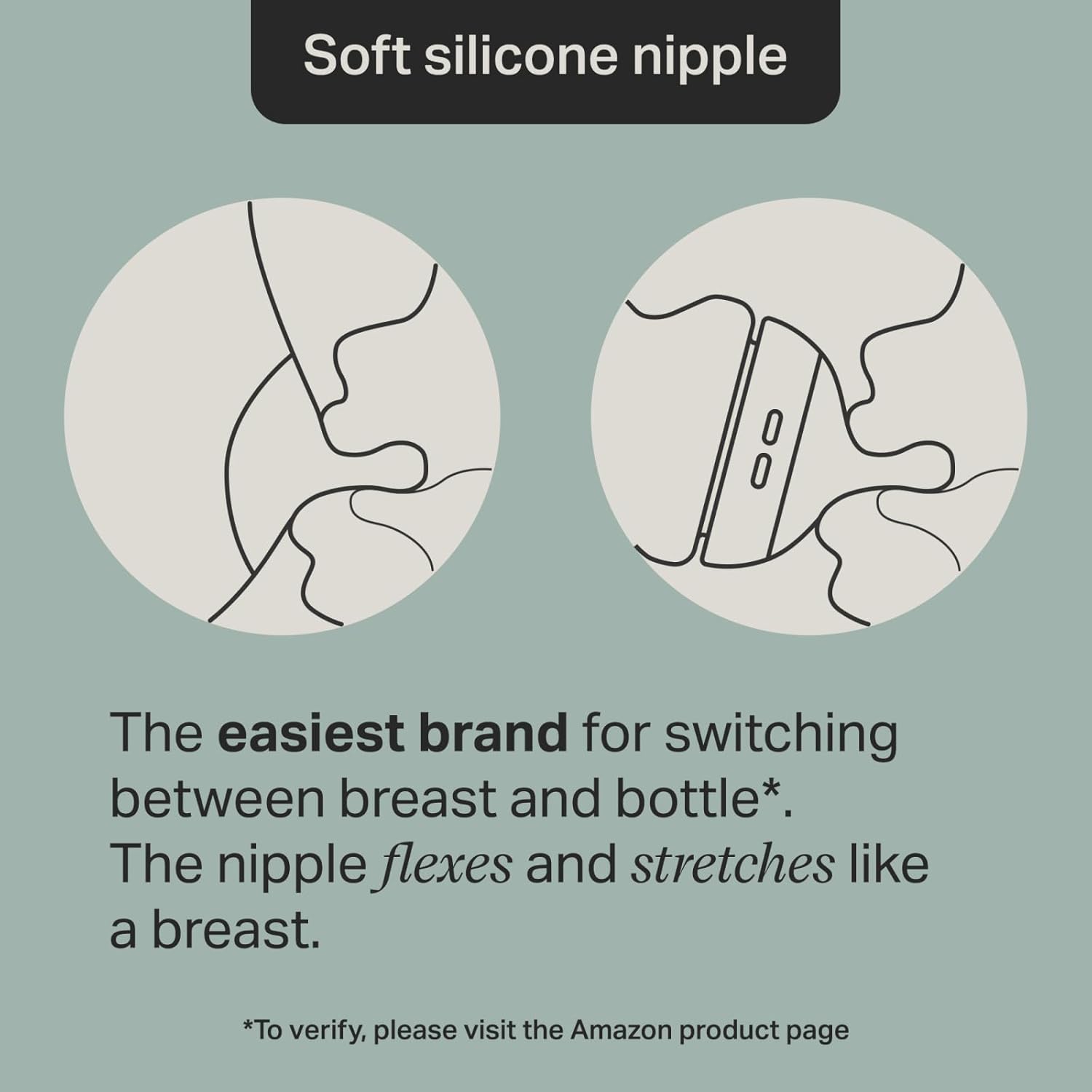 Dr. Brown's Natural Flow Anti-Colic Options+ Wide-Neck Baby Bottles 9 oz/270 mL, with Level 1 Slow Flow Nipple, 4 Count, 0m+